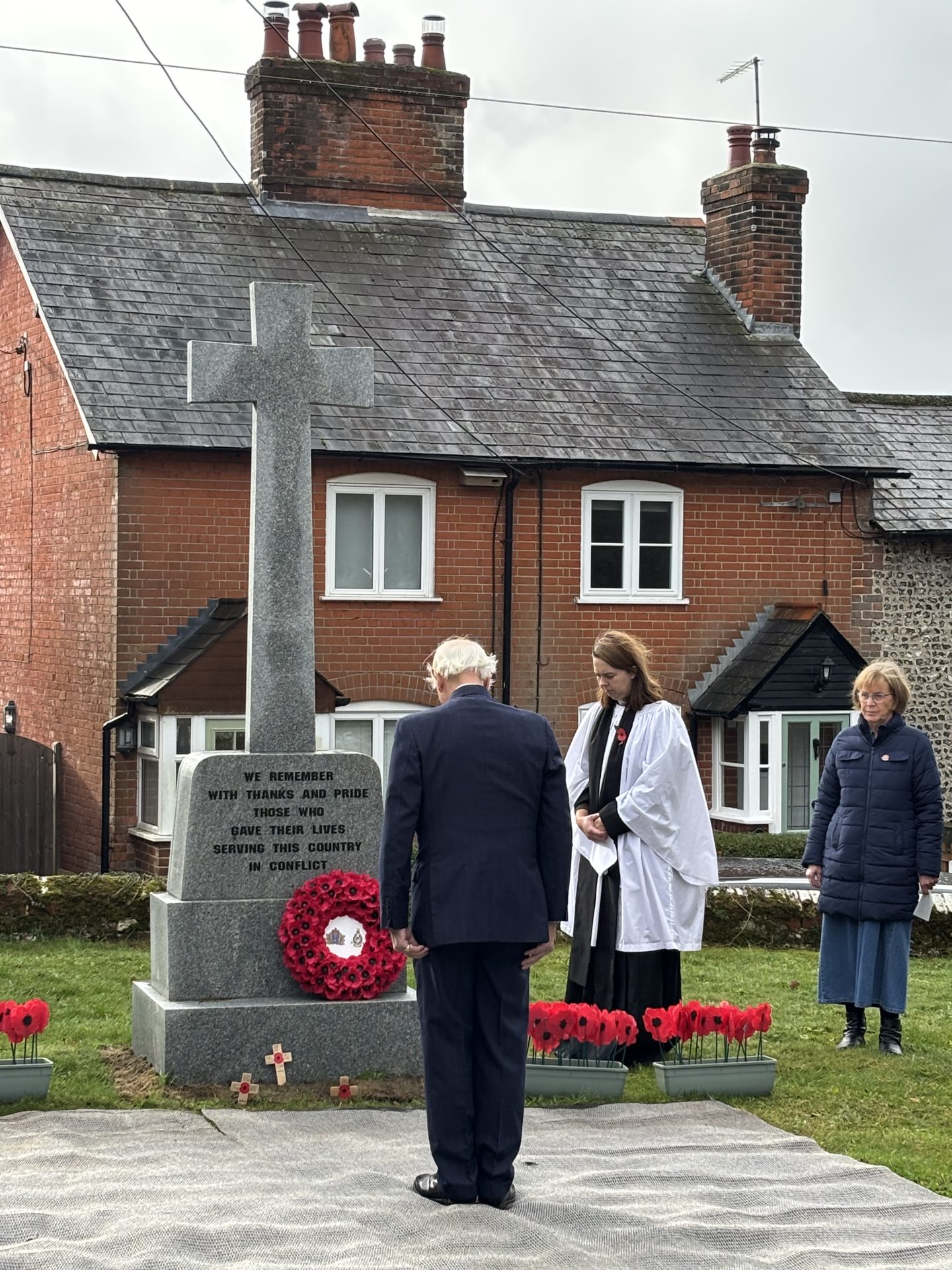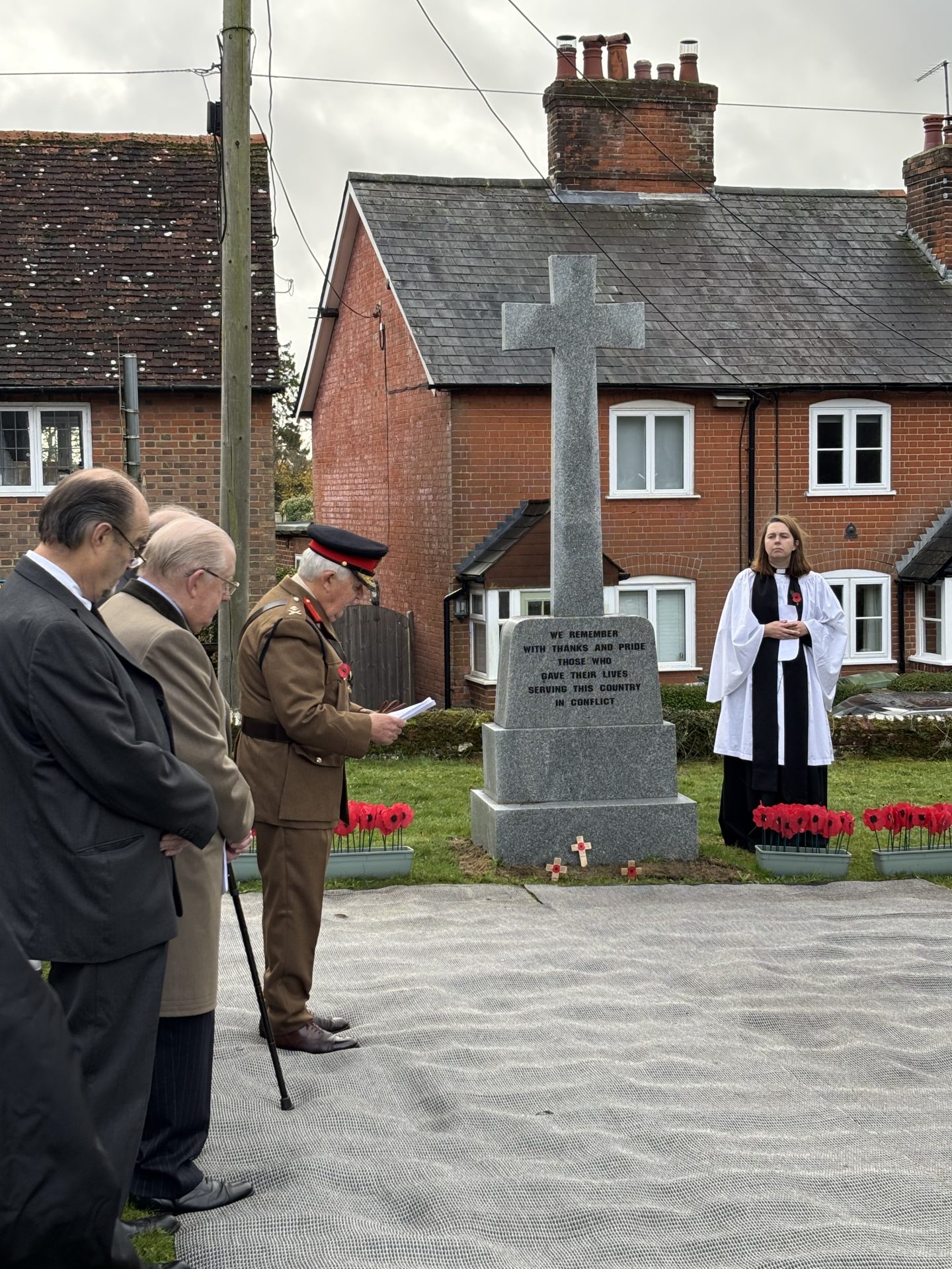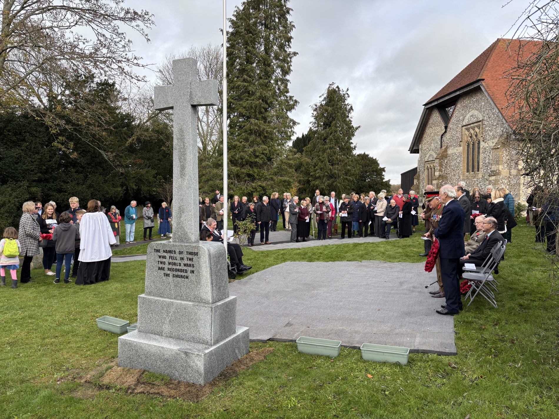 On Sunday 9th November 2025 Ropley was delighted to be able to use the newly installed War Memorial for our annual Remembrance Service. As part of that service the war memorial was blessed by the Revd. Amber. Everyone was also pleased to welcome David Ottley, a long term Ropley resident who was the inspiration behind the new memorial. David had made a special journey from the Royal Navy Retirement Home in Southsea where he now resides. Images from the service are available in the Gallery below.