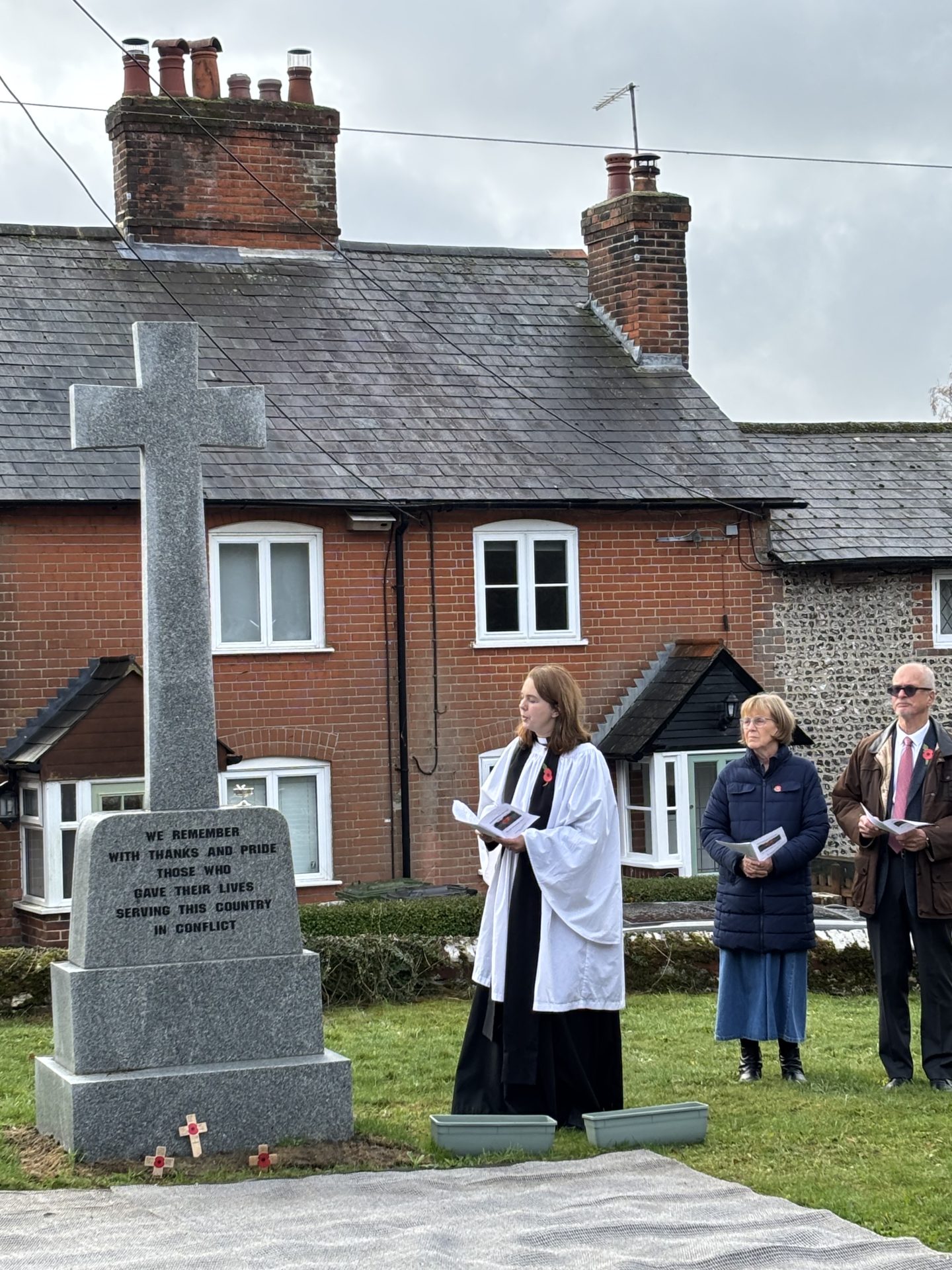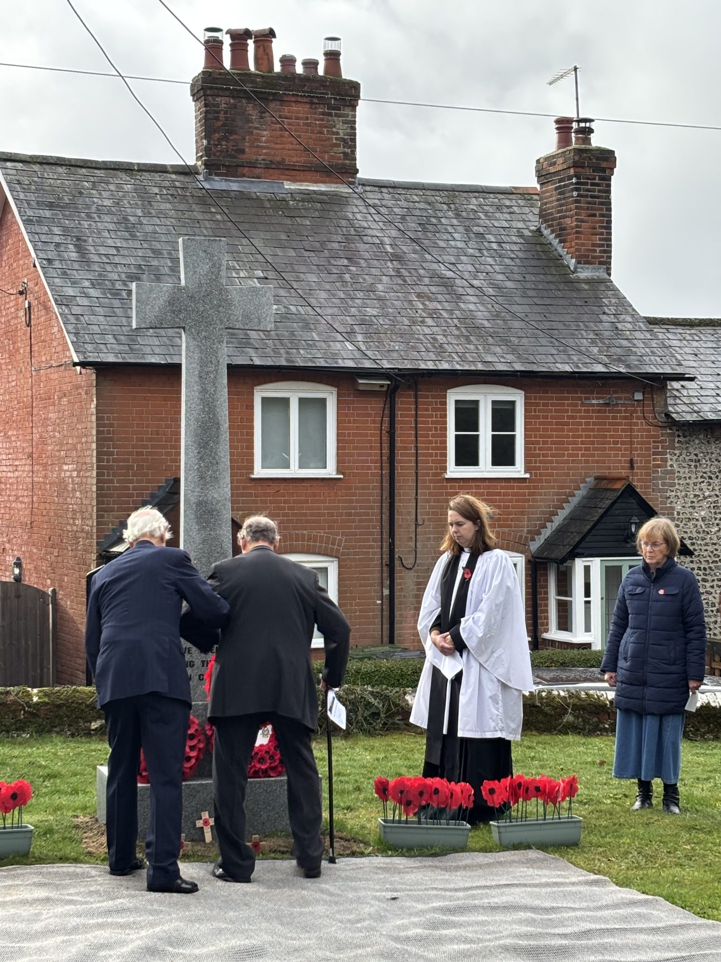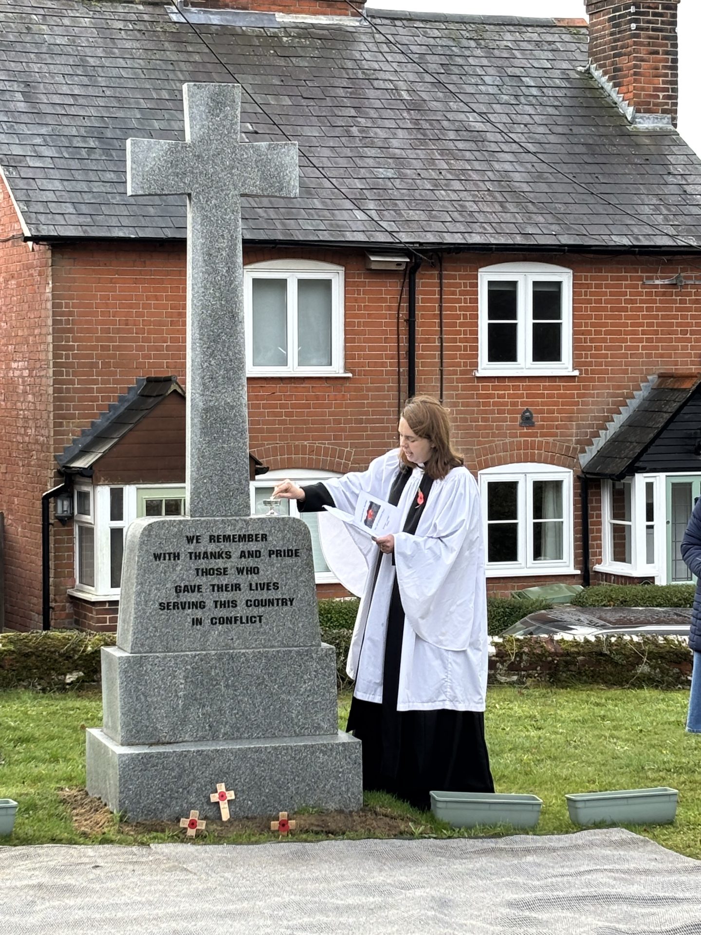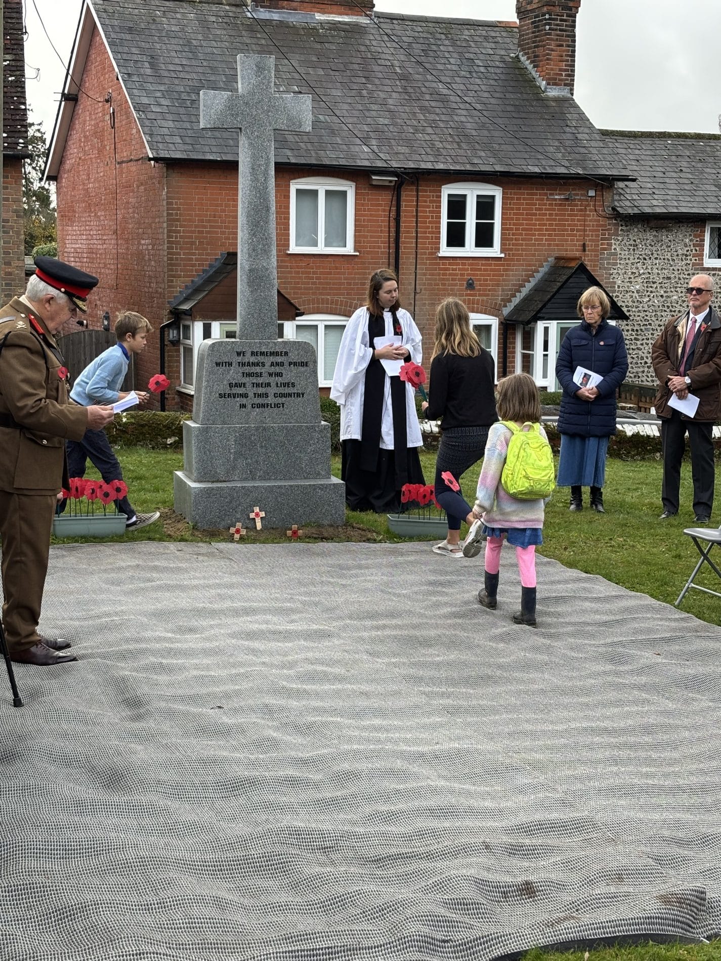 On Sunday 9th November 2025 Ropley was delighted to be able to use the newly installed War Memorial for our annual Remembrance Service. As part of that service the war memorial was blessed by the Revd. Amber. Everyone was also pleased to welcome David Ottley, a long term Ropley resident who was the inspiration behind the new memorial. David had made a special journey from the Royal Navy Retirement Home in Southsea where he now resides. Images from the service are available in the Gallery below.