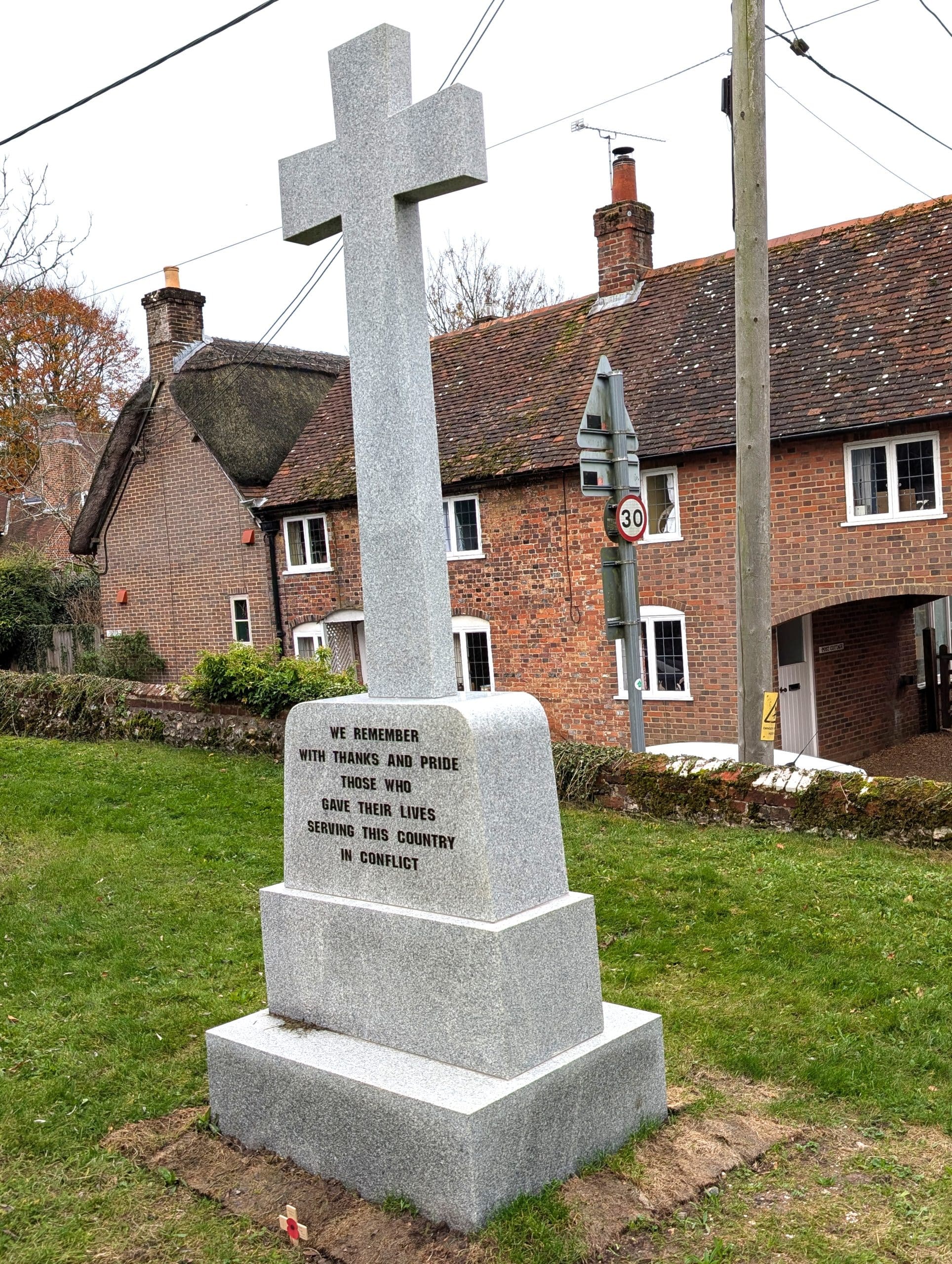 There has been a move within the village to locate a War Memorial within our boundary and a memorial committee has been set up to examine the possibility. The PCC has endorsed the proposal to place it within the church yard next to the flagpole. This has been agreed by the Parish Council. There seems general agreement that the memorial should be of simple design and about 8 feet high and, as such, similar to the Bramdean memorial shown above. In view of the fact that the names of those lost in the two world wars are recorded in St Peter’s it was initially considered that the names need not be duplicated on the memorial though there should be an appropriate inscription engraved on it. This was considered particularly appropriate in view of the fact that the memorial is intended to commemorate all who have given, or will give, their lives in conflict in the past, present and the future. The inscription would record this intention.